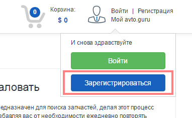 1) Для того, чтобы зарегистрироваться на сайте Авто.Гуру в качестве покупателя Вам необходимо в правом верхнем углу нажать на ссылку Регистрация.